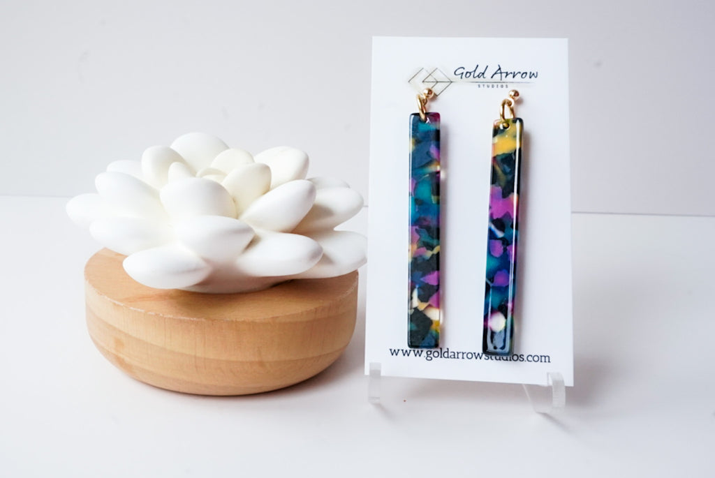 Introducing our Aurora Borealis Statement Earrings! These earrings capture the breathtaking beauty of the northern lights in stunning purples, blues, and yellows. Let your style make a statement with these unique and eye-catching earrings.